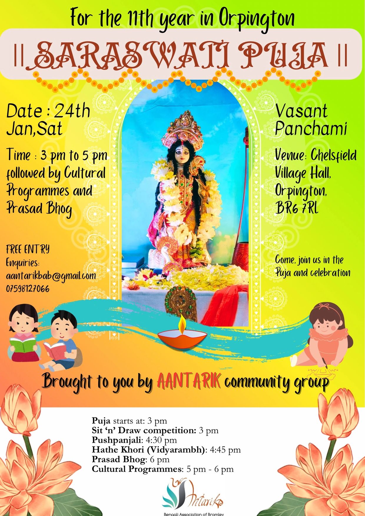 This is the 11th year that Aantarik is conducting Saraswati Puja in Orpington.